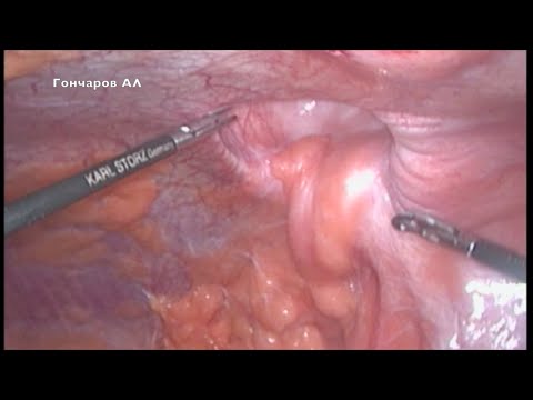 Laparoscopic Sugarbaker method for retroperitoneal sigmostomy herniation.